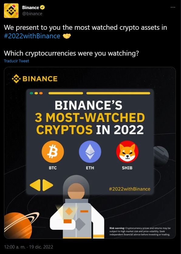 Yesterday Monday the 19th of December, Binance posted a Tweet with the most watched coins in its platform. The most important Cryptocurrencies platform in the world.