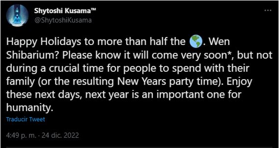 Shytoshi Kusama said that Shibarium is coming very soon.
